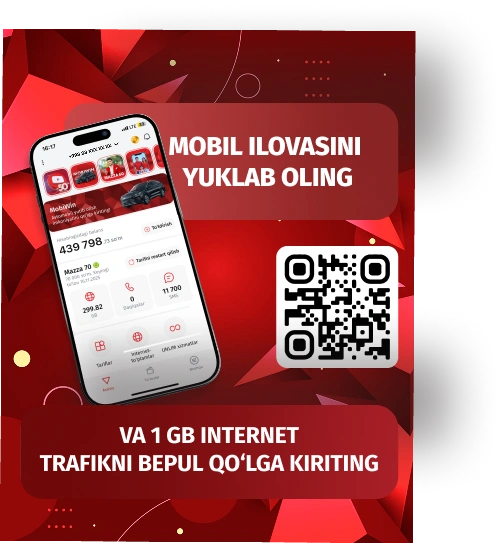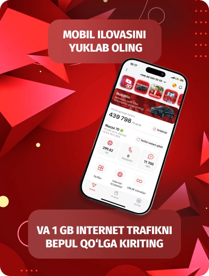 80 000 MBmobil internet oyigaCHEKSIZdaqiqalar O‘zbekiston bo‘yichaCHEKSIZTelegram, Instagram, Facebook, Facebook messenger, Youtube, Vkontakte, Odnoklassniki, WhatsApp, Viber, Teams, Zoom, LinkedIn3500 SMSoyiga80 000 so‘mAbonent to‘lovi oyiga«Xotirjam 60»Mobiuz mobil ilovasi orqali, hamda kompaniyaning ofislarida