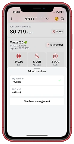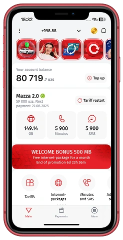 In the Mobiuz mobile application you can easily track the current balance of your mobile account, as well as the volume of minutes, MB and SMS.